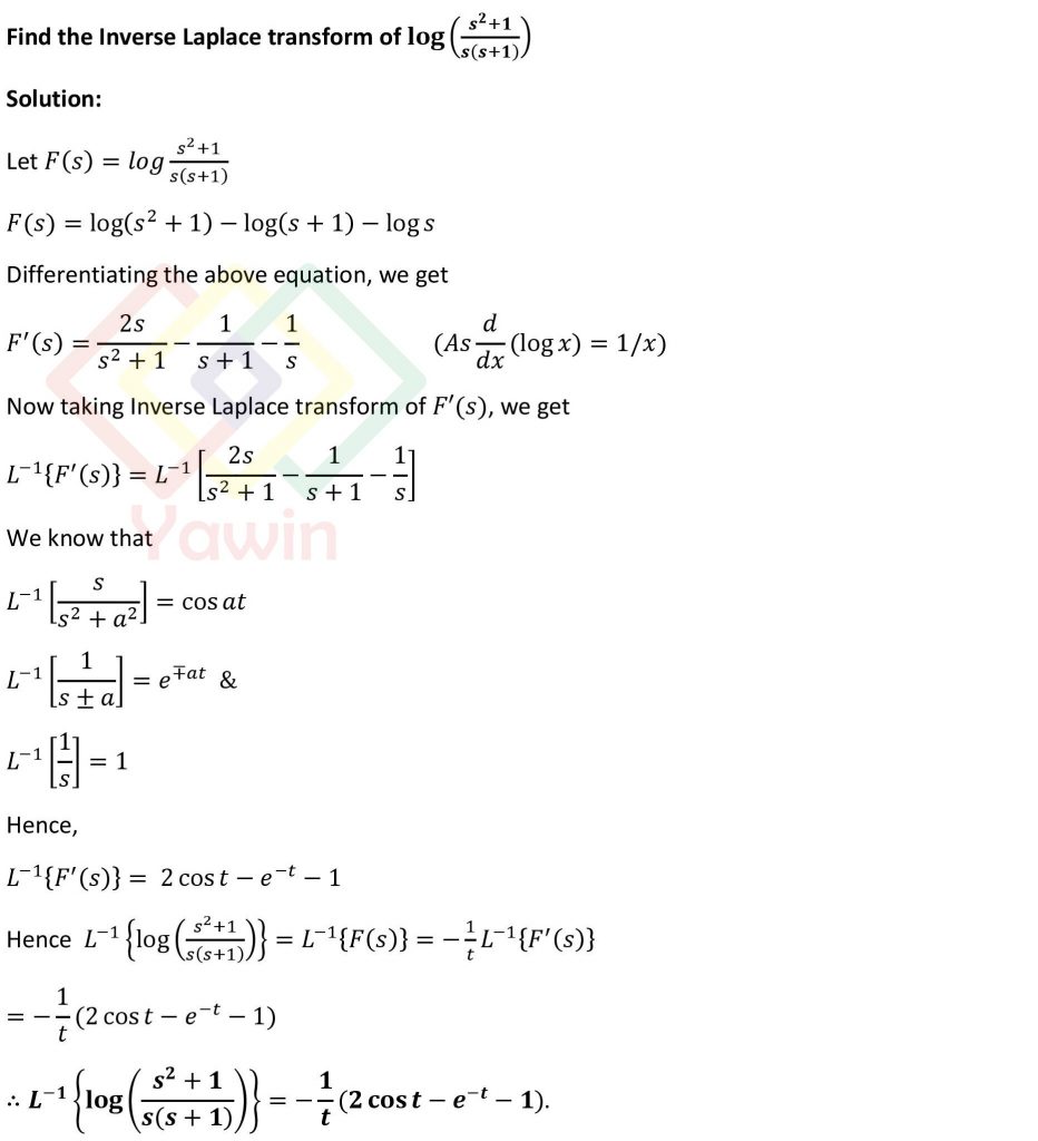 - Find the Inverse Laplace transform of log ((s^2+1)/(s(s+1)))